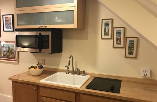 This ENGLISH BASEMENT STUDIO B & B is located in the heart of DC and has natural-light, fully furnished, beautifully decorated, completely private with access to patio and has its own private secure entrance.