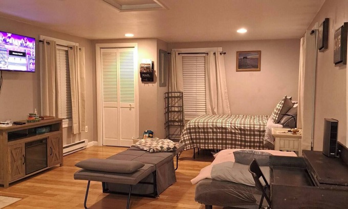 Forget your worries in this spacious and serene space. Cozy studio located in a quiet neighborhood, with a large yard. Features a full sized kitchen, and roomy bathroom. Hiking trails, shopping centers, and pick your own fresh fruit farms are just a few activities nearby. The gorgeous White Mountain are less than a 2 hour scenic drive away.