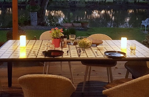 Everyone loves staying at our comfortable and stylish house, Januce, on the river. We have 5 star reviews. Januce is the perfect place to holiday or work from home. Private, with a huge deck looking over the river, comfortable, fast broadband, Netflix, leather couches, comfy beds, air-con, books, games, barb q, full kitchen.