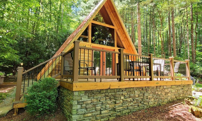 A-FRAME LOG CABIN IN THE WOODS! -WIFI, NEW HOT TUB, CREEK, VIEWS, FIRE PIT! is located in Sylva. A-FRAME LOG CABIN IN THE WOODS! -WIFI, NEW HOT TUB, CREEK, VIEWS, FIRE PIT! provides accommodation, featuring Air Conditioner, Security/Safety, Wellness Facilities, among other amenities. This Cabin features Air Conditioner, Security/Safety, Wellness Facilities, to make your stay a comfortable one.