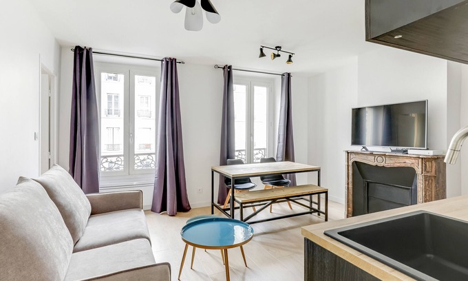 On the second floor - without elevator - of a typical Parisian building, this charming apartment offers all the comfort and necessities and benefits from the essential equipment for a successful stay.