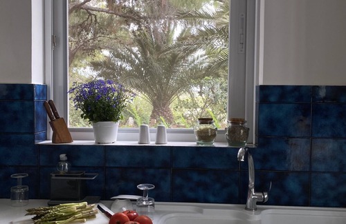 The large grounds of the villa, with their scattered olive trees, fruitful citrus grove and visiting birds, provide an idyllic setting for strolling, as well as ensuring the privacy of the guests throughout their stay.