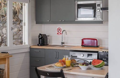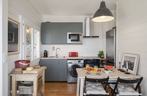 This house stands out for its "open space" characteristics, for privileging the natural light inside, for its "clean" and minimalist decoration. With 2 bedrooms (1 double bed and 2 single beds) and 1 bathroom with shower, this house has capacity for a maximum of 4 people. Outside, there is a very pleasant leisure area, a portable barbecue, and a dining area. Set between the green of the mountain and the blue of the sea, this property has a sweeping view of the Atlantic Ocean that conveys a sense of calm and peace.