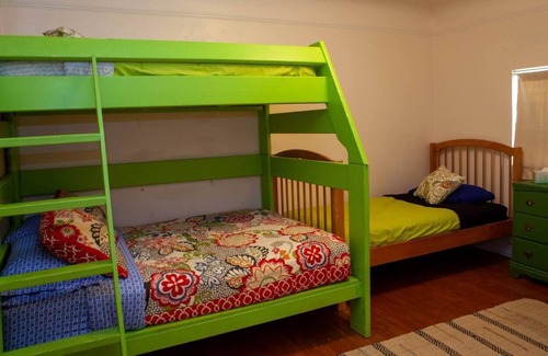 Downstairs two bedrooms (belonging to the Little Prince and his narrator friend, the Aviator) and bathroom are separated by a private corridor. The Little Prince's room has a bunk bed with full on the bottom and twin on top, plus a twin bed. The Aviator's room has a queen bed and a single sofa-bed. These two rooms can house up to 7 people.