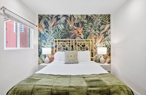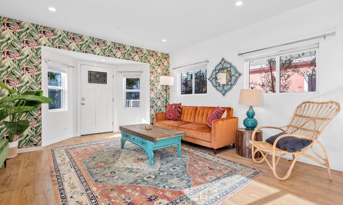 Welcome to Urban Jungle: your personal oasis just steps away from the iconic Walk of Fame! This newly renovated bungalow combines comfort, style, and convenience, offering a retreat in the heart of Hollywood. You'll feel right at home with lush decor, Smart TVs, and a shared, serene outdoor patio/courtyard. The best of Hollywood is at your doorstep, with legendary venues like the Hollywood Pantages Theatre and Hollywood Palladium and famous dining spots like Roscoe's Chicken & Waffles and Sugarfish, all within walking distance.