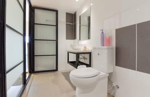 This fully furnished and conveniently located self-contained 2-bedroom loft houses an open plan bedroom with a KING sized bed and an en-suite. A non-ceiling second bedroom with a queen sized bed. A warm and cozy powder room. A comfy living area with a large 4-seater sofa. A fully decked kitchen and dining. Complimentary coffee. A laundry area with a washer, dryer, iron and an ironing board.