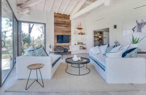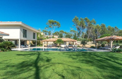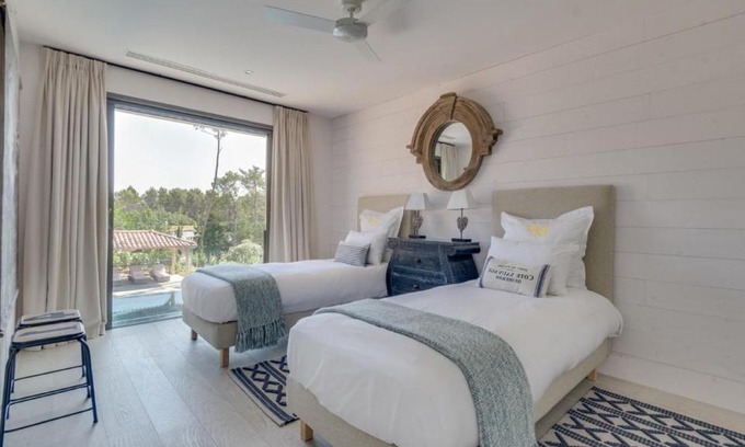 Situated in Magalas, just 17 km from Beziers Arena, A large table with chairs and a garden furniture with sunbeds features accommodation with a bar, a garden, a terrace and free WiFi. Guests have a private balcony. The air-conditioned apartment is composed of 7 separate bedrooms, a living room, a fully equipped kitchen, and 5 bathrooms. A flat-screen TV is available. Saint-Nazaire Cathedral is 17 km from the apartment, while Mediterranee Stadium is 19 km from the property. The nearest airport is Beziers Cap d'Agde Airport, 29 km from A large table with chairs and a garden furniture with sunbeds.