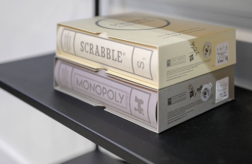 Indoor Living (sleeps 2) - Open floorplan with Smart HDTV, modern farmhouse décor with splashes of Earth tones, indoor gas fireplace, queen-sized leather sleeper sofa, chair, record player, and foyer table with games.