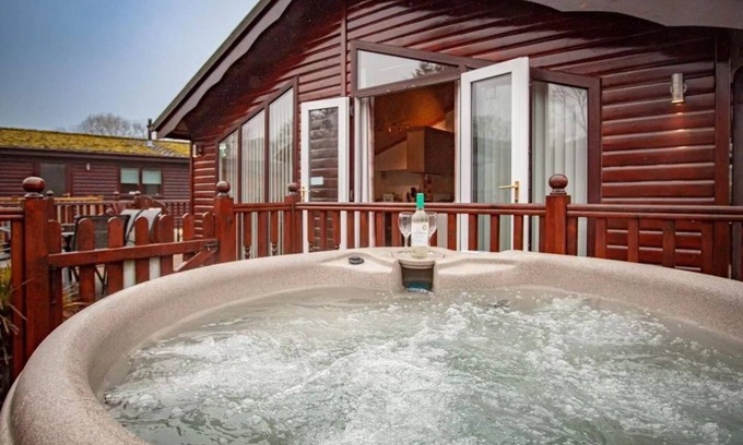 All gas, electricity, bed linen, towels, and bathrobes are provided for your convenience. Private parking is available for one car, and a cot can be provided upon request. The lodge features a secure decked area complete with a hot tub and outdoor dining furniture.