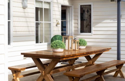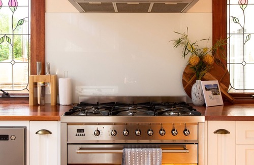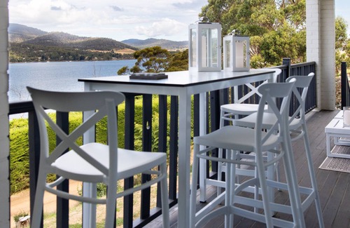 There are a couple of options for relaxing at Woodland Bay Retreat, a living room off the kitchen/dining and a more formal sitting area and large dining room which can be closed off with french doors. This room has access directly onto the large wrap around verandah and takes in the glorious views over the bay.