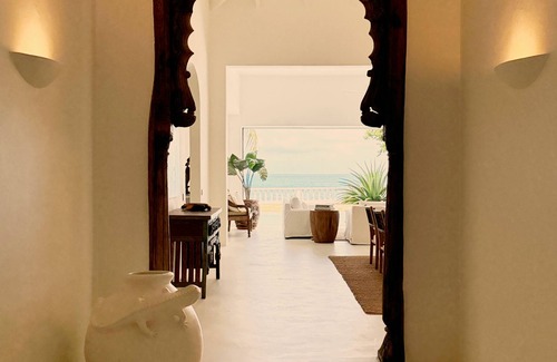 This spacious oceanfront retreat comfortably accommodates up to 10 guests. The main villa features three en-suite bedrooms—one with a king-sized bed and two with queen-sized beds—while the adjacent guest apartment offers two additional en-suite bedrooms, each with a four-poster queen-sized bed.