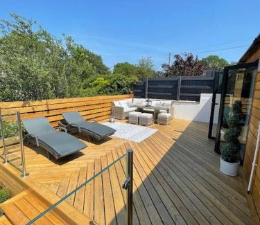 A luxury unique home spa - White Stones Retreats. Offers accommodations in Weymouth, 10 miles from Monkey World and 19 miles from Corfe Castle. This property offers a private pool and free private parking. Bournemouth International Center is 28 miles away and Portland Castle is 10 miles from the vacation home. With free Wifi, this 5-bedroom vacation home features a cable flat-screen TV, a washing machine, and a fully equipped kitchen with a dishwasher and oven. Towels and bed linen are offered in the vacation home. The accommodation has a fireplace. Guests can relax in the garden at the property. Poole Harbor is 24 miles from the vacation home, while Golden Cap is 25 miles from the property. The nearest airport is Bournemouth Airport, 30 miles from A luxury unique home spa - White Stones Retreats..