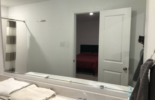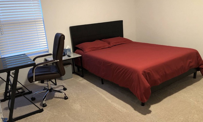 Master bedroom with in-suite bathroom, patio, and backyard. Newly constructed quiet community, access to walking, running and other outdoor activities with a nearby lake. Fully furnished with modern appliances, including washer and dryer. 55 inches Roku TV for the bedroom and 65 inches Roku TV for the Living room. Alexa with touchscreen in the bedroom and premium sound echo dot in the living room/ kitchen area.