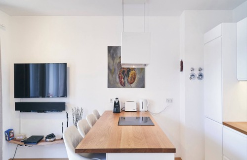 A new apartment with an underground parking at a Centralized and trendy area is located in Mitte. A new apartment with an underground parking at a Centralized and trendy area provides accommodation, featuring Fireplace/Heating, Internet, Kitchen, among other amenities. This Condo features Fireplace/Heating, Internet, Kitchen, to make your stay a comfortable one.