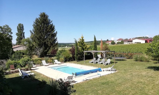 old vineyard farmhouse entirely renovated, with swimming pool, in a charming flowery village of the vineyards of southern Burgundy.