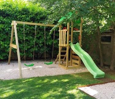 Food & DrinkTea/Coffee makerBathroomBody soap, Toilet, Toilet paper, Towels, Hairdryer, Private bathroom, Shower, Shampoo, Walk-in showerMedia & TechnologyTV, Flat-screen TVGeneralHeating, Ironing facilities, Fan, Fire extinguisher, Iron, Private entrance, Hardwood or parquet floors, Smoke AlarmKitchenMicrowave, High chair, Dishwasher, Cleaning products, Toaster, Coffee machine, Dryer, Dining table, Stovetop, Oven, Wine glasses, Electric kettle, Washing machine, Kitchen, RefrigeratorLiving AreaFireplace, Sofa, Dining areaBedroomWardrobe or closet, Linens, Childrens' cribsOutdoorsTerrace, Outdoor furniture, Outdoor dining areaBuilding CharacteristicsDetached, Semi-detachedEntertainment & Family ServicesBoard games/puzzles, Baby safety gates, Books, DVDs or music for childrenRoom AmenitiesSofa bed, Adapter, Socket near the bed, Non-feather pillowViewInner courtyard viewCleanliness & disinfectionHand sanitizer |