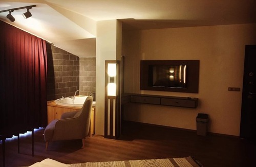 In our rooms, you will find a world filled with modern and comfortable amenities. Relax in the warmth of our fireplace-like Jacuzzis, catch up on your favorite shows with our smart TVs, and stay connected with your loved ones using our free internet connection. Moreover, our showers provide continuous hot water, ensuring you unwind after a long day.