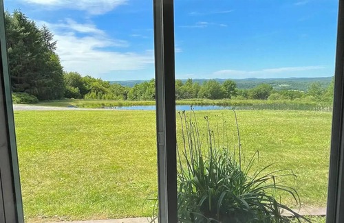 A long tree-lined driveway leads to a secluded cozy Country Home where you'll find complete privacy and breathtaking views of the Western Catskill Mountains.