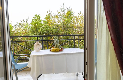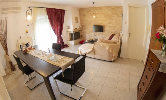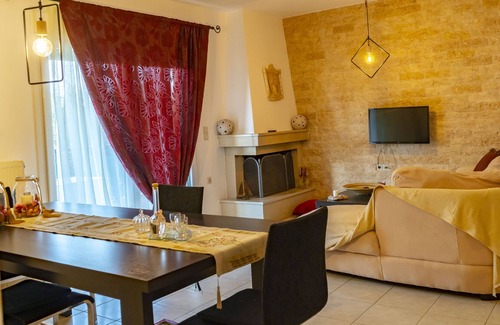 It is a first- floor apartment of 90sqm with two large bedrooms, a living room, a kitchen, that includes all the necessities for the preparation and preservation of meals, a bathroom, storage room, and balconies around. Garden and Barbecue are available to enjoy a coffee, drink or peaceful rest. There are two air conditions, one in the living room and one in the bedroom. The second bedroom has a fan. Τhere is plenty of space outside the courtyard for parking. There are three additional apartments with permanent tenants. It is a very quiet area, cars do not pass. It lays 300 meters from the beach with umbrellas, deck chairs, and various shops. There are coffee shops, taverns, supermarkets, pizza and souvlaki shops, rental offices for cars, motorbikes and bicycles, souvenirs, every day open. 200 meters from the apartment there is a bus stop where you can plan your movement for the entire Cretan island. Βuses pass every 20 minutes. For walking, there is a large beach and relatively close to the Rozas and Panagia gorge. Heraklion and Hersonissos are 15 km away. The airport is 8,5 km away, with the possibility to get to the apartment by bus, taxi or I can transfer you, after an agreement. My apartment is next to yours and I will be able to welcome you and help you with any questions you may have.