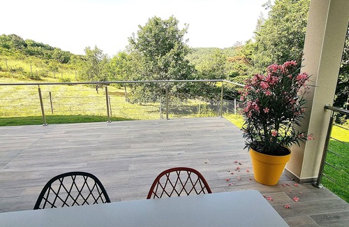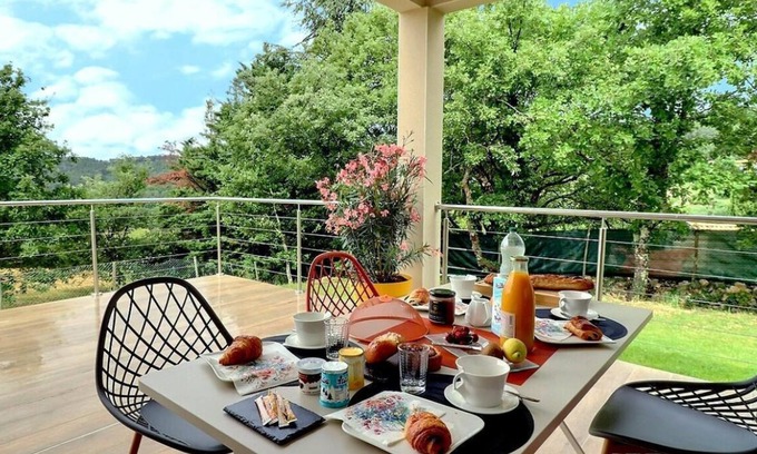 You can enjoy a terrace with a distant view of the Château d'Aubenas, without any neighbours opposite, where you can enjoy your breakfast or summer evenings around the plancha.