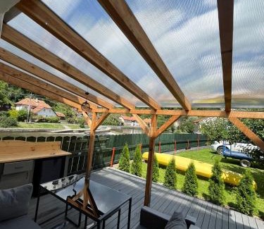 BathroomTowels, Shower, Toilet paper, Bathtub or shower, Toilet, Hairdryer, Private bathroomKitchenRefrigeratorGeneralHeating, Trash cans, Private entranceViewLandmark view, View, Garden view, River viewOutdoorsTerrace, Outdoor furnitureAccessibilityEntire unit located on ground floorBuilding CharacteristicsPrivate apartment in buildingRoom AmenitiesClothes rack, Socket near the bed |