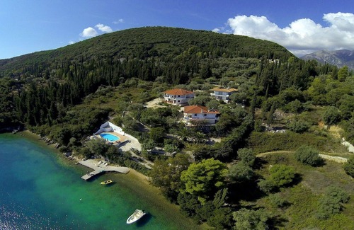 Korakias SeaView are set in 1.24 acres (5000 sq m) located on the east coast of the island of Lefkada, in the residential area of Korakias. These charming houses are based on a biological land which are surrounded by beautiful tree covered hills, olive and fruit trees, gardens and wild flowers. It offers a breathtaking view of the sea and the Princess' Islands (Skorpios, Skorpidi, Sparti, Madouri). There is a path full of nature leading to a small beach and a private jetty where one can dock their boat within 30 m from the house. It provides an outdoor barbeque area, a free parking space and an outdoor seaside swimming pool (ranging 0.80 m to 1.80 m) with a relaxing sunbathing deck with its facilities.