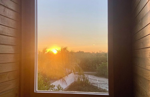 Puerta del Mar is a bright and spacious ocean view villa of 177sq2 located on the south part of Holbox Island. It’s just steps away from Holbox’s turquoise beach and a 25 minutes’ walk to downtown. The premium option In Holbox for groups of friends or family. The villa is a little gem nestled in nature's mangroves of Punta Cocos, one of the most beautiful beaches of the island and famous for its incredible bioluminescence. Located in Punta Cocos national park, the house offers a unique experience of nature with pink flamingos, eagles and other colorful tropical birds flying above.