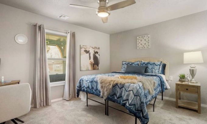 Large bedroom and bathroom. Everything you need for your stay in Tulsa