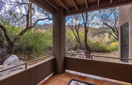 The condo itself is a spacious and bright 2-BR, 2-Bath, with an open floor plan, massive windows with unforgettable view of Catalina mountains, and a large garden-style patio overlooking the Catalinas. It is on the ground level, with no stairs to climb.