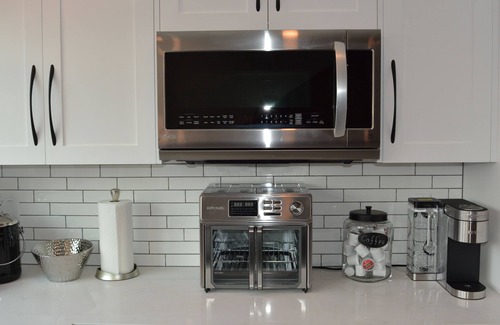 The kitchennette is fully equipped with dishes, utensils, glasses, mugs, coffee maker, kettle, pots and pans, an air fryer, toaster, two electric frying pans and other amenities that will allow you to have a meal on the deck or at the dining table in the suite.