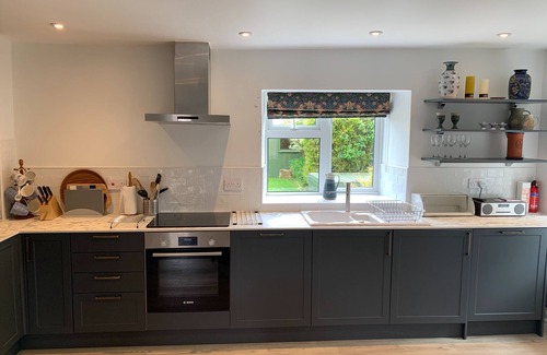 The kitchen is fully equipped with all you should require during your stay with plenty of storage space and worksurface. There is a fridge, freezer, washing machine, tumble dryer and dining table suitable for 4 people. The living space offers comfortable seating for 4 people around the wonderful wood burner, perfect to curl up in front of on cooler evenings. The cottage is heated throughout with oil central heating and benefits from free WiFi, flat screen TV and a skybox with freeview channels. Upstairs sleeps 3 people, one double bedroom and one single bedroom, with traditional beams plus a family bathroom.