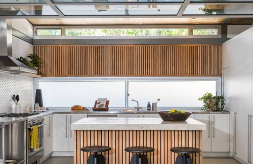 Bring the outdoors in by way of opening up the walls to allow cool ocean breezes flow through the main living, dining and kitchen areas.