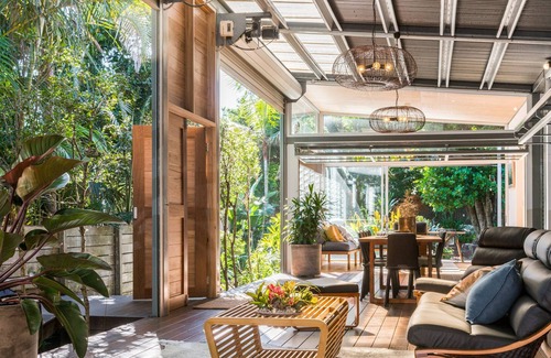 `Billabelongil is a quintessentially Australian designed home. Nestled in tropical gardens and enjoying a premium location in one of Byron Bay's favourite beachside holiday destinations, Belongil Beach.