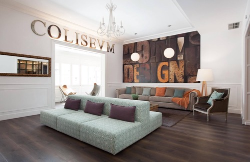 Situated in the heart of Barcelona's nerve centre along with most of the city's attractions, this spectacular 275m2 flat offers a carefully designed layout and plenty of space. Its interior terrace, unique in the city and with frontal views of the historic Coliseum Theatre on Gran Via, brings the best of the outdoors inside, even with a realistic blue sky framing the entire space. The room is finished off with exquisite furnishings, including an original swing, artificial grass and a fountain of the kind once used in the streets of the city.