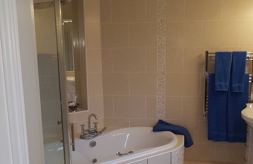 New spacious beautiful home finished to a high standard. Features include 4 large double bedrooms all en-suite with power showers and walk-in cupboards and deep Jacuzzi bath in master bedroom on the ground floor, will sleep 8 comfortably, child’s cot also provided. Additional extra bathroom on ground floor with power shower wet room, (wheel chair friendly). Fully equipped kitchen with dish washer, large fridge freezer, fan oven, electric hob,microwave,toaster,coffee machine and baby high chair. In utility room there is a washing machine,tumble dryer and extra sink.Other features included under floor heating, water heated by a combination of oil, solid fuel, electricity and solar panels. Bed linen and towels supplied. TV, DVD and Wi-Fi also included.