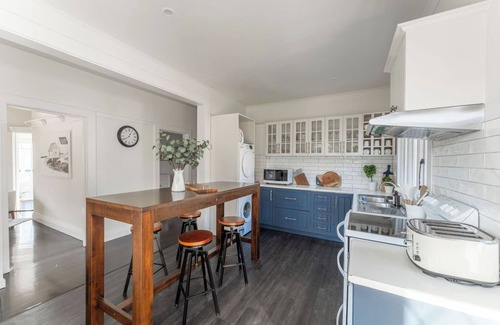 On the entry level you will find everything you need, including a generous kitchen fully equipped to self-cater. Adjacent are two separate living spaces, one with a scenic window seat, while the other offers spectacular views of the Tamar and is rich in sun. The master bedroom connecting to the sunroom, offers a comfortable queen size bed and an abundance of space. Sweeping along the hallway you will find two additional bedrooms with queen size beds and a fully renovated bathroom; the bath awaits you!