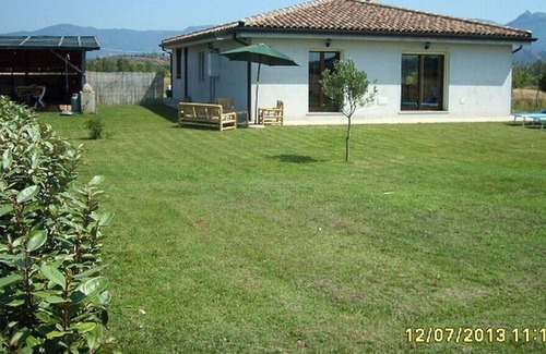 Built by the owner with many windows with a great sense of light and space. The large living and kitchen area is fully equipped with comfortable sofas, satellite tv, stereo, heating; and large dining table. Two bedrooms, bathroom, five sleeping places. The house has an alarm system and automatic shutters all around, which are controlled via a remote control.