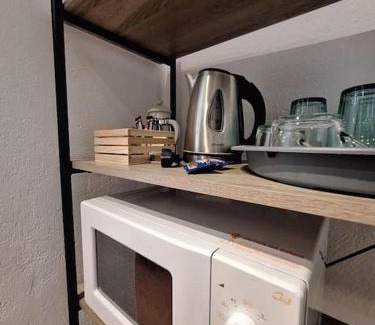 Food & DrinkTea/Coffee makerBathroomPrivate bathroom, Towels, Hairdryer, Toilet, Shower, Toilet paperGeneralPrivate entrance, Heating, Tile/Marble floor, Air conditioning, Trash cans, IronKitchenRefrigerator, Microwave, Stovetop, Kitchenware, Dining table, Electric kettle, KitchenetteOutdoorsBalconyMedia & TechnologyFlat-screen TVBedroomLinens, Wardrobe or closetRoom AmenitiesSocket near the bed, Clothes rack, Sofa bed |