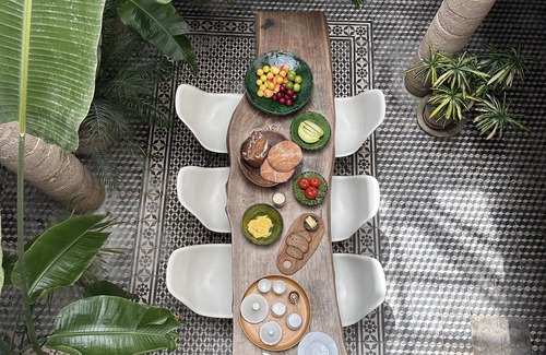 The house has been sympathetically restored, retaining all the original features such as the sandstone columns, thuya wood ceilings and the antique tiled floor of the inner courtyard. It is furnished with a mix of vintage & modern European furniture and art, with some beautiful Moroccan antiques and paintings by local artists, alongside works by contemporary British artists. Split over four floors, the house has two garden roof terraces; one with a kitchen and bar - great for outside dining and looking out across the medina rooftops, the other terrace is perfect for late afternoon sun. There are four double bedrooms, all with en-suite wet room bathrooms, and two cosy snug lounge rooms with large open fireplaces, and comfortable chairs. The bright covered courtyard dining area with a large dining table seating eight, is surrounded by mature plants, and is located next to the fully equipped kitchen, ideal for long lazy breakfasts, and dinner at home.
