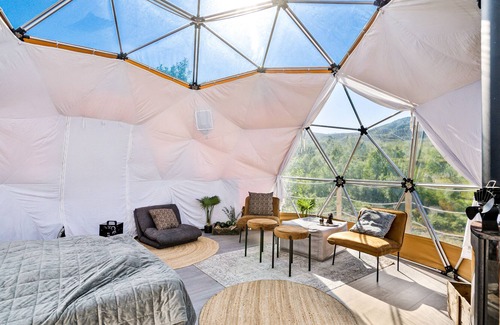 Enjoy the arctic night in the domes heated bed while you marvel at the dancing aurora through the huge skylight. The sound of burning wood and flickering flames in the woodburner will keep you snug and comfort through the night. But keep in mins that its a tent in the arctic. It wont ve as warm as an ordinary house when its freezing cold outside. The Dome is connected to a elegante decorated tinyhouse where you’ll find a bathroom, kitchen, home cinema, livingroom and extra beds. It works for up to seven persons on shorter stays and is ideal for up to five for longer stays. The units is sited on the farms private riverbed surronded by amazing scenic views of mountains, fjords, river and nature. The space is all yours to enjoy and the only visitors are the wild reindeers passing in front of your windows and the beautiful horses playing on the farms field in the background. If you like hiking you’re in for a treat. The farm is a popular startingpoint for both locals and travleres who wanted to explore the endless hiking possibilities at the area. You just strap on your boots and let them take you to the beaches, seashore, mountains, hills and valleys surronding the farm. The farm is sited in one of the regions best hotspots for finding the world famous northern lights. We got perfect conditions due to the low lightpollution and coastal climate. According to the statistics you have about 95% chance of seeing it if you stay three days or more in this region between August and April. And if you’re looking for some fun action we can help organize dogsledding , snowmobile experiences and other activities.