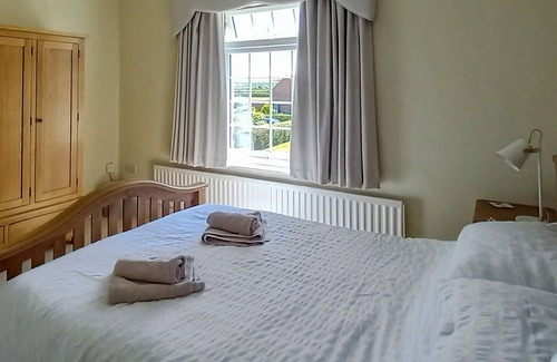 Inside you have a wonderful country kitchen, well equipped with everything you could wish for when whipping up your favourite meals to share. In the centre of the kitchen you have an island with a pair of stools so that this becomes a social room. The living room is open plan with the dining room – this was once the cell, which is hard to believe in such a bright and welcoming living space. The dining table is large and extendable, so that you can all enjoy meals together. The three piece suite is in front of the TV and electric stove, with large bay windows bathing the room in light. There is additional seating in the sun room which looks out onto the west facing garden, ideal for late afternoon sun. Downstairs you have a spacious kingsize bedroom complete with a triple wardrobe and a beautiful bow window, as well as a ground floor shower room. Up on the first floor you have a further two bedrooms, a second spacious kingsize room and a large twin bedded room. South facing, both have views beyond the village to the hills and both include large wardrobes and bedside drawer units. There is also a family bathroom with both a double sized shower cubicle as well as a free-standing bath. The property is complete with a handy utility room. The cottage has parking at the rear on your own private driveway, with an enclosed garden complete with a patio where you can relax in the sunshine.