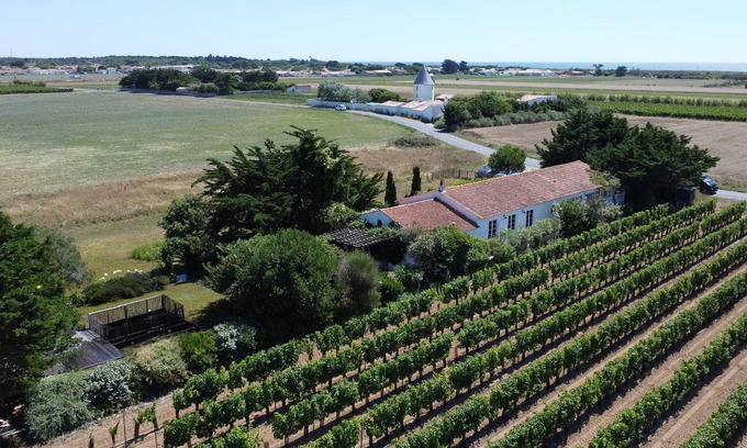 Just 7 minutes from the centre of Les Portes en Ré and 5 minutes from Ars en Ré, two delightful villages on the Ile de Ré, come and discover this large, single-storey house with several terraces and one acre garden planted with trees and flowers, surrounded by vineyards.