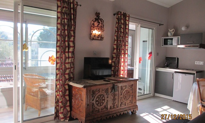 This studio located on the 1st floor has an elevator to access it and a private access. Its south-facing orientation allows maximum sunshine and offers a very beautiful view of the surrounding hills.