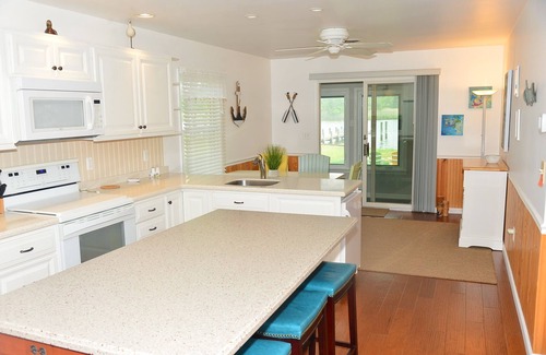 A waterfront house perfect for a family or friends get away. Large waterview sunroom to watch the activities on the water. Sleeps 12. Come by car or water and tie up on the property dock. Kayak, Fish or Crab right from the dock. Enjoy nearby Rock Hall with its quaint shops and lots of restaurants. Enjoy Eastern Shore Living while in the comfort of an updated house. Just off the Chester River with deep water. Kayaks ,and paddle boards available to use. 5 Bedrooms,1 king 2 Queen, 2 Bunk rooms (both with a double on the lower bunk and a twin on top) and 3 full baths. A very large sunroom, a fabulous place to watch the water activities.. BBQ outside or sit in the adirondack chairs and watch the boats and wildlife. Great family vacation spot.