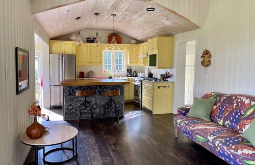 The beautifully decorated “guest bunkie” provides a romantic retreat separate from the main house. This cozy space has a comfortable king-size bed and is ideal for those who want acoustic isolation from the main house. It has its own heating and AC.