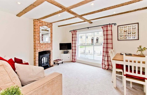 The living/dining room offers the most wonderful views of Battle Abbey whilst the large original sash window floods the space with light. A comfortable sofa bed, contemporary fireplace and stunning exposed beams would make anyone feel at home here.
