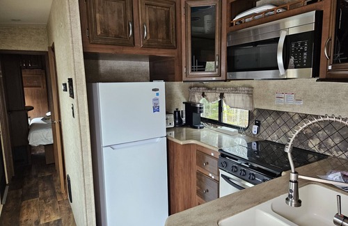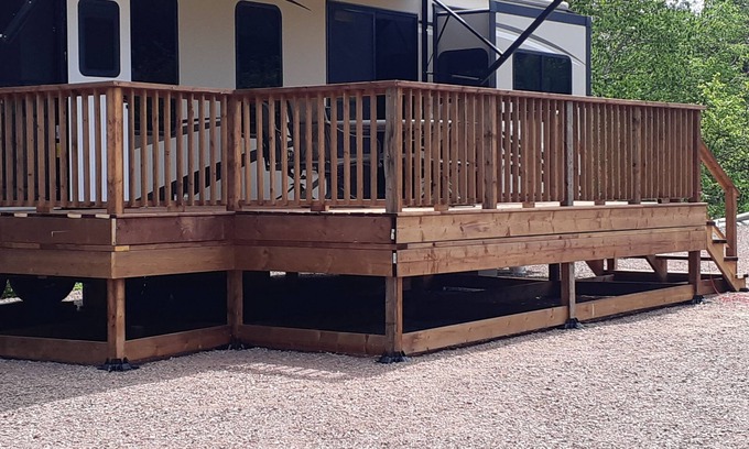 It has a fantastic waterfront dock which is a two minute walk from the RV. Launch your kayak or canoe from the property’s dock.