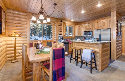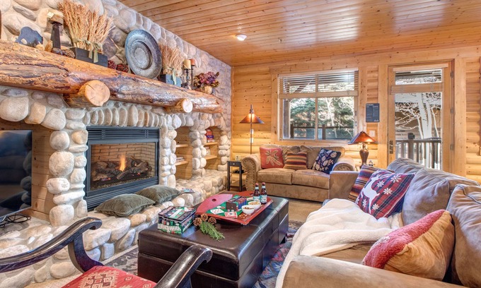 The moment you step inside Abode at Black Bear Lodge #231 you'll be welcomed by a log cabin-like interior decor and a natural sunlit open concept layout that combines the kitchen, living room, and dining room, a great place for your group to congregate and rehash the great day you had exploring. Channel your inner chef in the fully-equipped kitchen and prepare delicious meals for you and your group as they relax from a fun-filled day at Deer Valley on the comfortable couches in front of the stone encased gas fireplace. If your muscles are tired after adventuring around Park City, you can head out to your private deck to take a dip in your very own hot tub. When it's time to lay your head to rest and recharge ahead of another adventure-filled day, you'll find two well-appointed guest suites – one with a king bed and another with a king + twin/twin bunk bed – both with private ensuite bathrooms. Larger groups can also take advantage of the queen sleeper sofa in the living room and third full bathroom, accommodating a total of 8 guests.