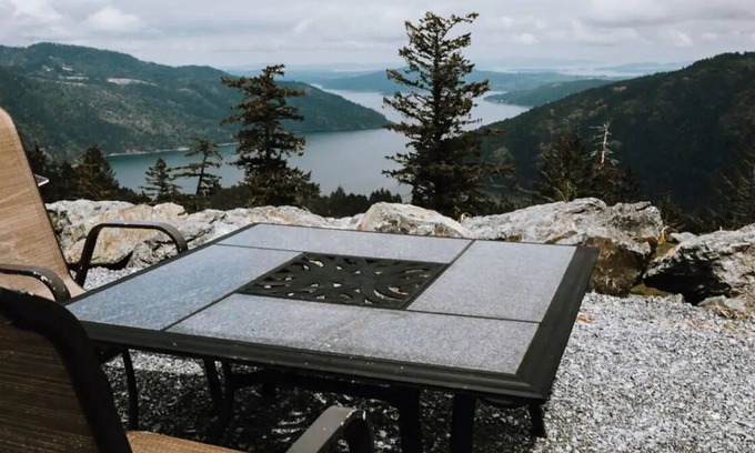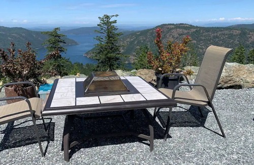Enjoy the wood burning firepit table overlooking the Saanich Inlet and Finlayson Arm.