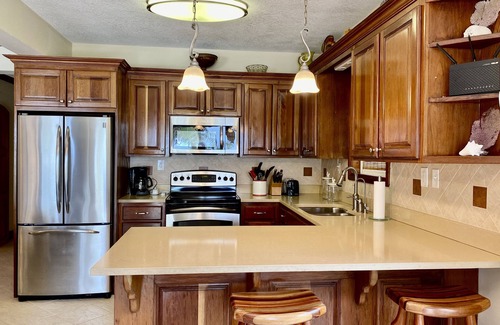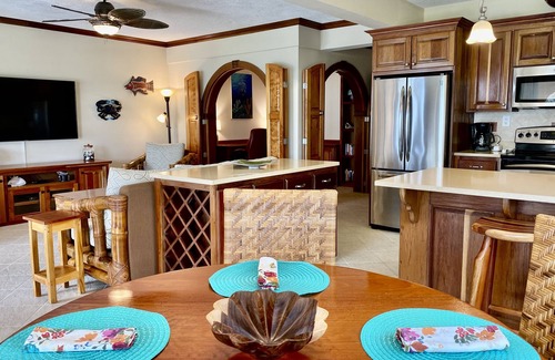 This condo is located on the North side of the island - less than 2 miles from the airport. It is close enough to town for convenience but far enough away to be removed from noise and congestion. There is air conditioning throughout or you can open the sliding doors and let the ocean breeze during the day. The kitchen is spacious and well equipped to cook your favorite meals or hire a private local chef to enjoy our local dishes!